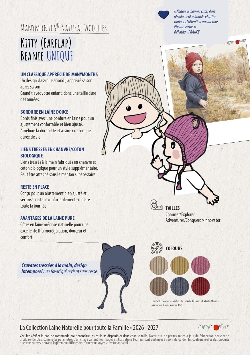 Le bonnet Kitty en laine mérinos ManyMonths reprend la coupe iconique du Earflap Beanie : une forme bien enveloppante, des tresses sur les côtés… et en bonus, des oreilles de chat qui font fondre tout le monde. Résultat : un bonnet qui protège super bien du froid, qui respire quand il fait plus doux, et qui met une touche fun à chaque tenue.