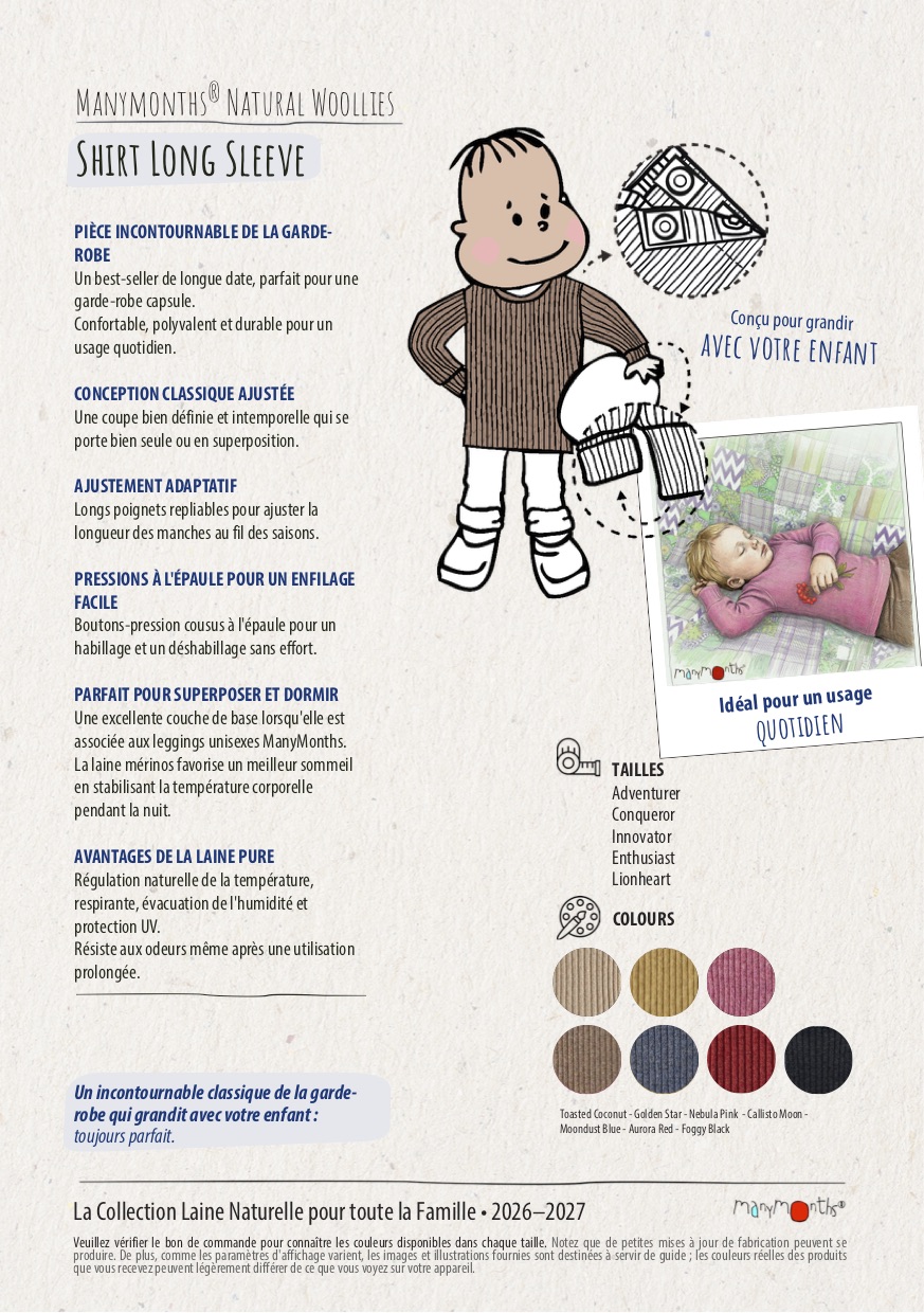 Le t-shirt manches longues ManyMonths Natural Woollies, c’est :